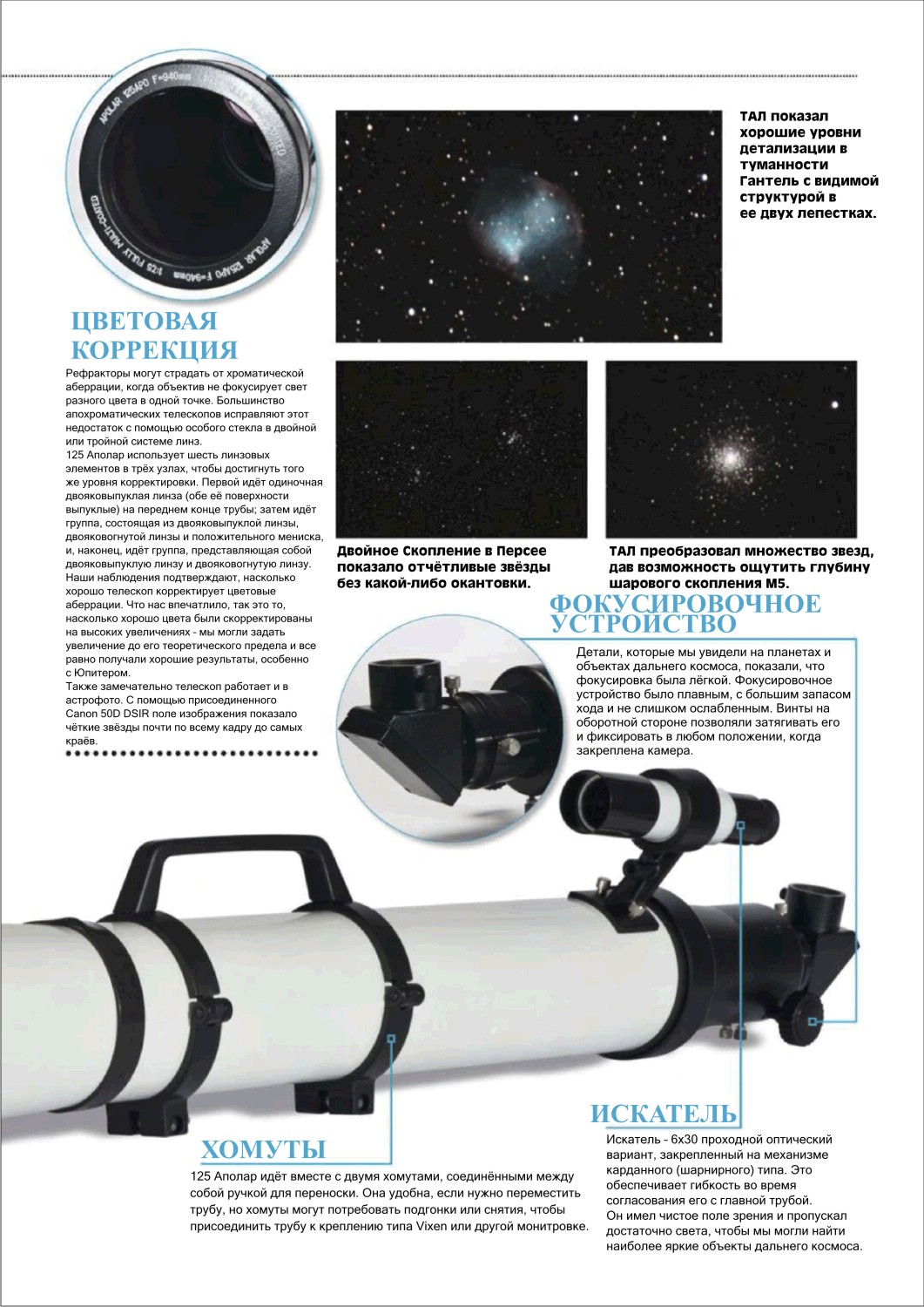 ТАЛ 125 АПОЛАР апохроматический телескоп является продолжением богатого российского наследия качественной оптики и надежной механики, хотя его дизайн и применяемые материалы могут казаться вышедшими из прошлого века...